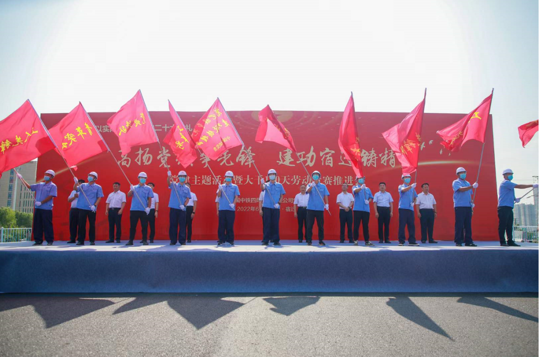在北京路快速化改造工程1標(biāo)段施工現(xiàn)場開展了“高揚(yáng)黨旗爭先鋒·建功宿遷鑄精品”黨建主題活動(dòng)暨大干100天勞動(dòng)競賽推進(jìn)會(huì),為項(xiàng)目建設(shè)者鼓勁打氣,緊緊將建設(shè)者的心凝聚在一起。該工程主線高架橋施工基本完成,比計(jì)劃提前了20多天。