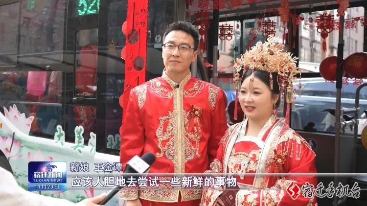 新娘王金譚說:“一起在公交車上更有團聚的時間,互動的時間也比較多,應該大膽地去嘗試一些新鮮的事物,接受度比較高一點,這個方式確實是挺吸引人的。”