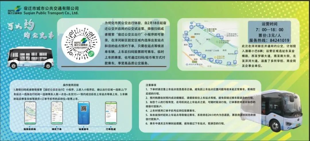 “線上約車、線下掃碼、車隨人走”的宿遷網約公交車,2月18日正式在洋河新區(qū)上線啦!