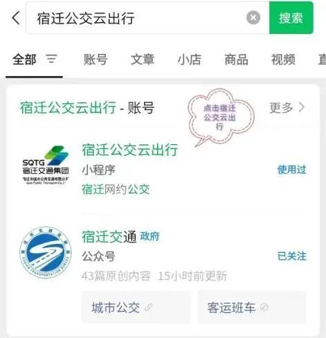 ①微信搜索“宿遷公交云出行”或手機掃公交站臺網約公交二維碼,進入小程序。
