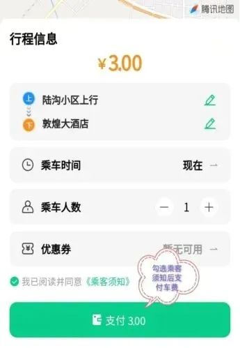 ④勾選我已閱讀并同意《乘客須知》、《購票須知》后完成支付,在上車點等候上車。