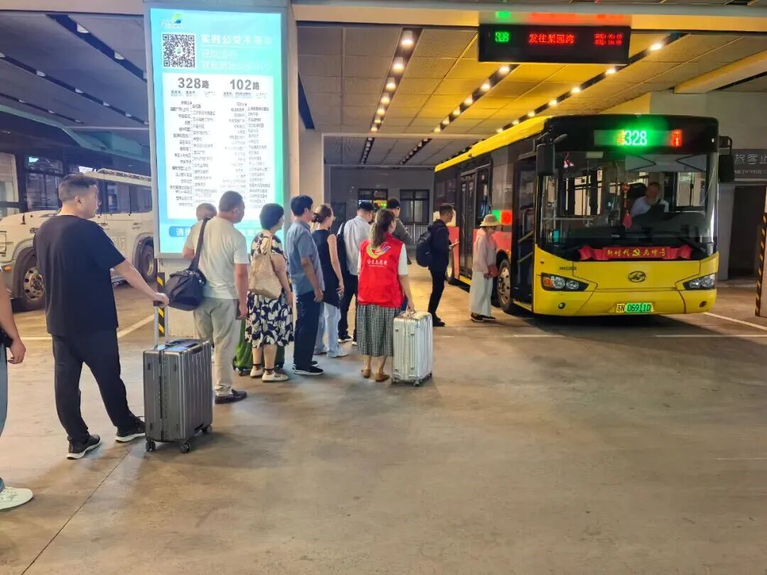 青年志愿者們也成為節(jié)日里的“溫暖使者”。他們身著紅色志愿服,活躍在各大公交站點(diǎn)。在高鐵公交樞紐站,志愿者們主動幫攜帶大件行李的乘客搬運(yùn)行李,引導(dǎo)他們快速找到乘車線路。