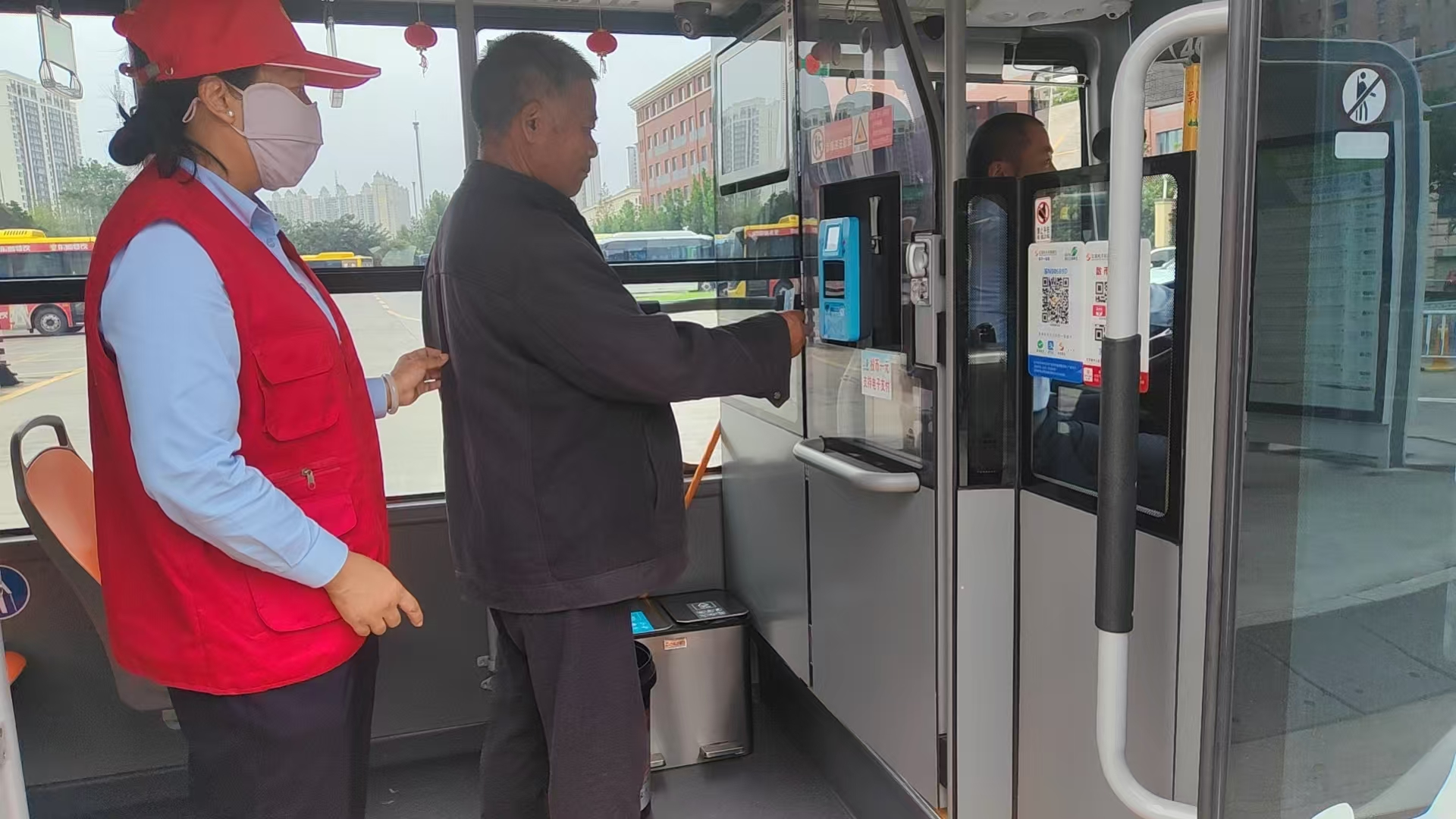 小小的車廂里,藏著城市的溫暖記憶。節(jié)日期間,公交公司組織志愿者在重點站點開展導(dǎo)乘服務(wù),主動幫扶老幼乘客、解答旅游咨詢、引導(dǎo)排隊乘車,用熱情服務(wù)傳遞城市溫度。301路公交車廂內(nèi),車頂兩側(cè)整齊懸掛著鮮艷的五星紅旗,微風(fēng)拂過,紅旗輕輕搖曳,讓流動的“中國紅”成為街頭最美風(fēng)景線。