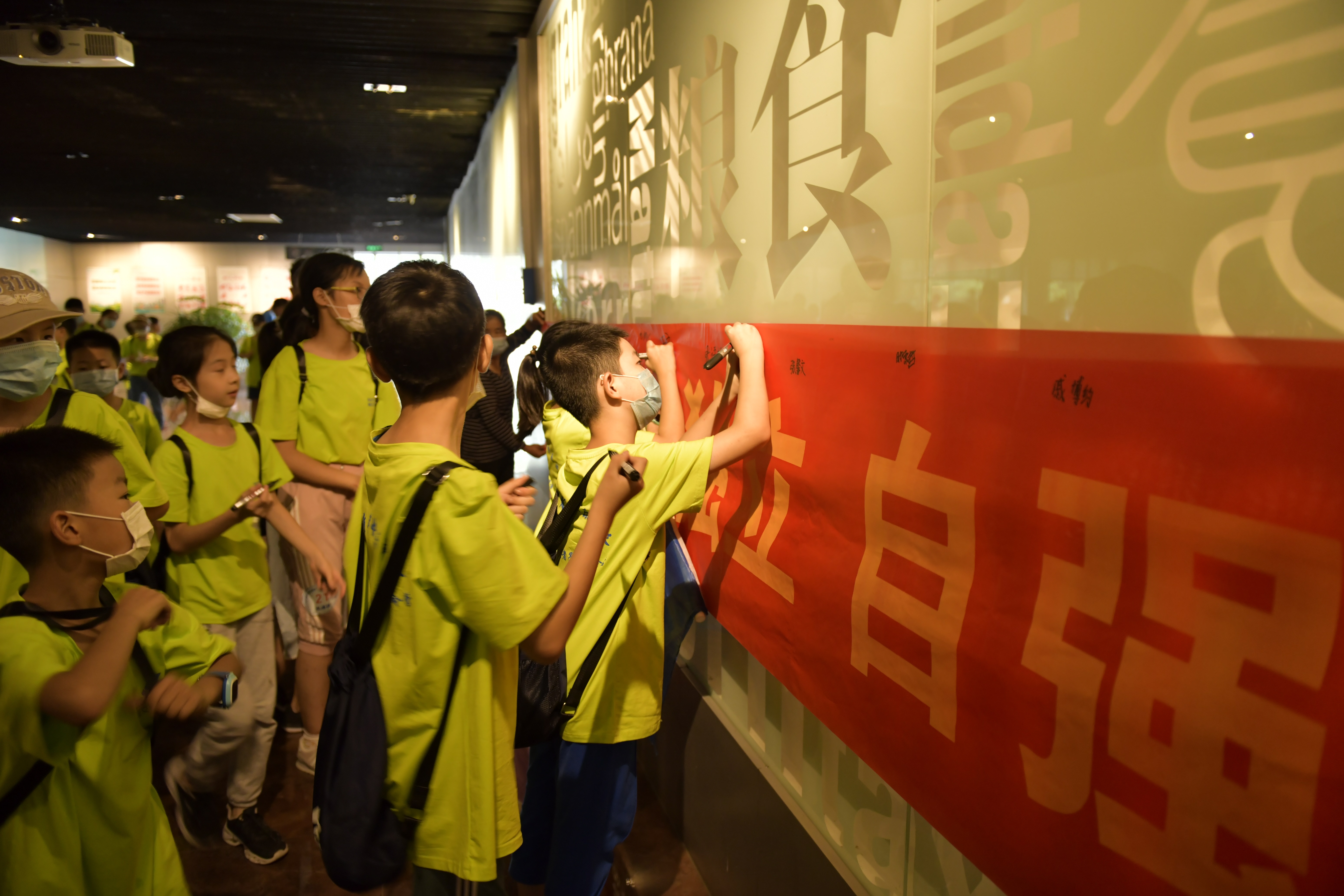 游戲結(jié)束后,孩子們前往中國(guó)糧食博物館參觀研學(xué),并在“勤儉節(jié)約 獨(dú)立自強(qiáng)”的橫幅上簽名承諾。