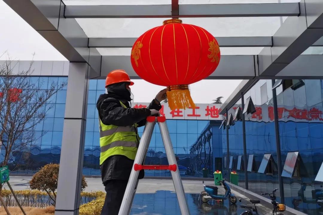 喜慶的“福”字與中國(guó)結(jié)映襯著一線建設(shè)者的笑容,濃濃的年味便彌漫在北京路快速化改造工程建設(shè)現(xiàn)場(chǎng)。