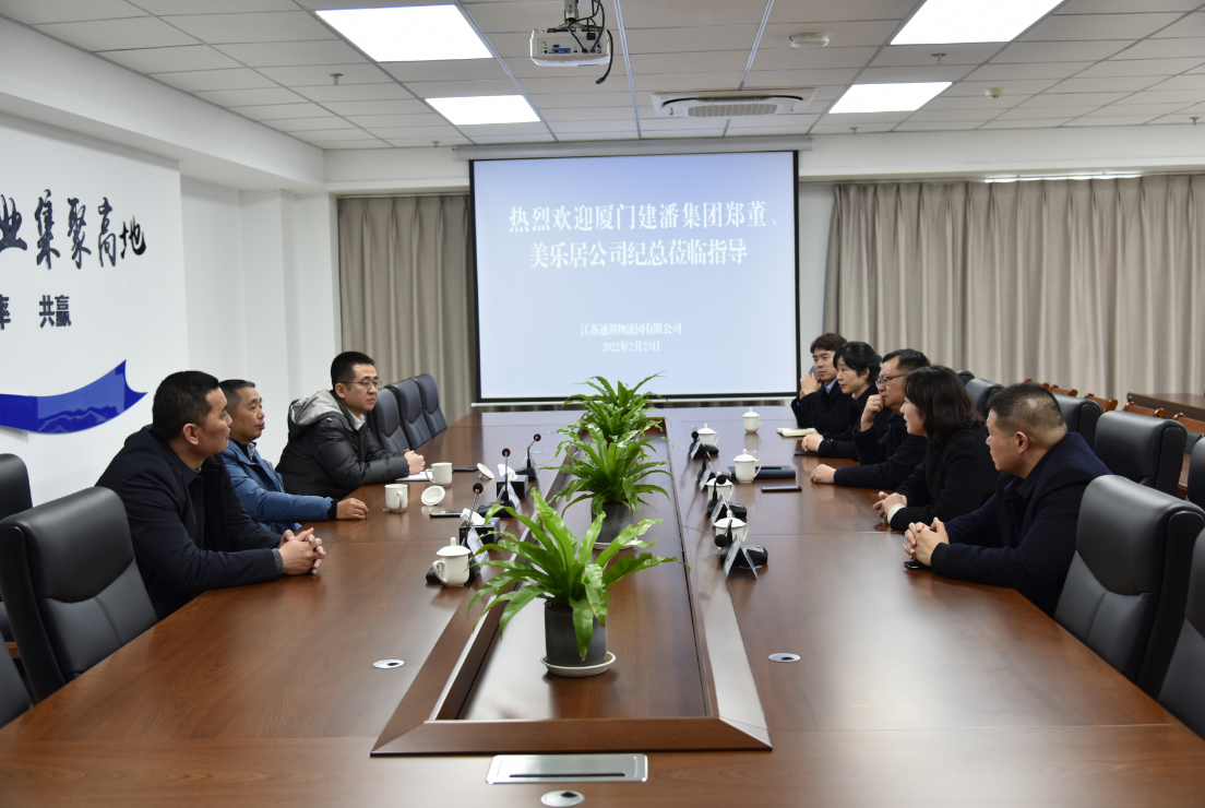 2月23日,廈門市建潘集團(tuán)有限公司董事鄭峰、廈門美樂居商貿(mào)有限公司總經(jīng)理紀(jì)海峰一行蒞臨通湖物流園實(shí)地考察交流。集團(tuán)黨委副書記周斌陪同考察。