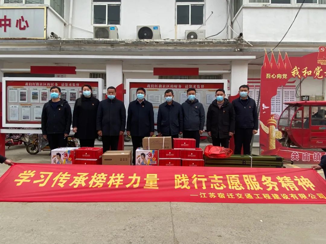 ??????? 期間,宿遷交建黨總支積極主動對接共建社區(qū)——宿豫區(qū)關廟鎮(zhèn)紅旗社區(qū)黨支部,在該支部的統(tǒng)一安排下,黨員志愿者挺身而出、沖鋒在前,為結(jié)對社區(qū)送去1200支口罩、4箱84消毒液、10箱純凈水等防疫物資,積極幫助社區(qū)工作者開展體溫測量、物資分送等志愿服務工作,聯(lián)手筑牢疫情防控“紅色堡壘”。