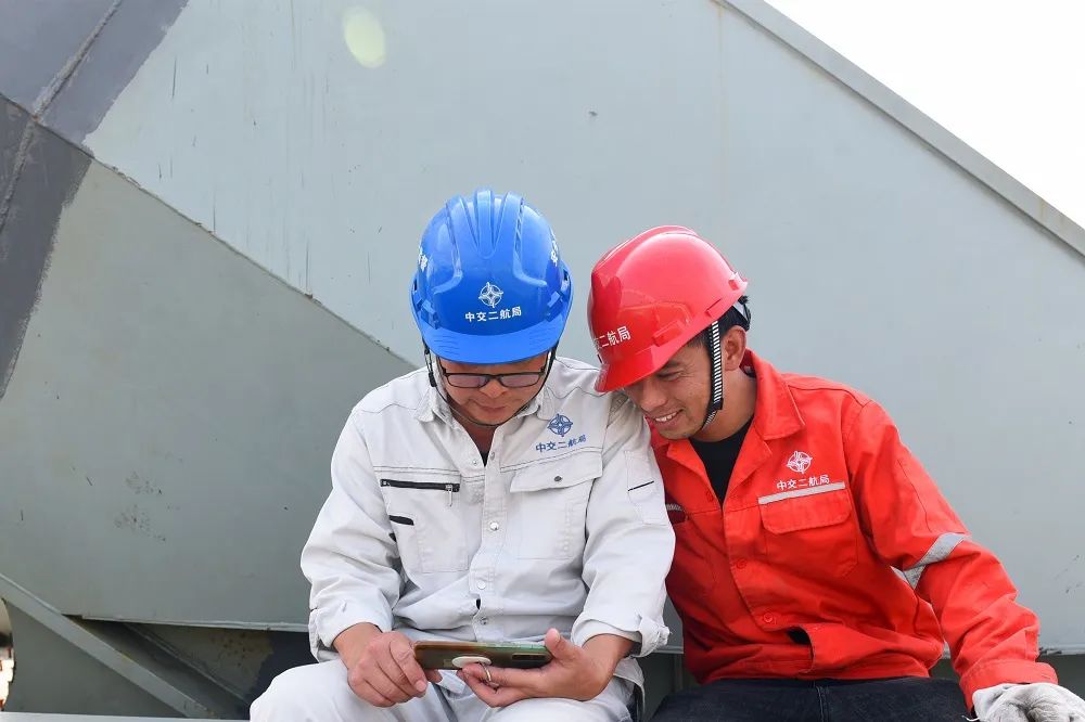 一線建設(shè)者利用休息時間學(xué)習(xí)黨的二十大精神