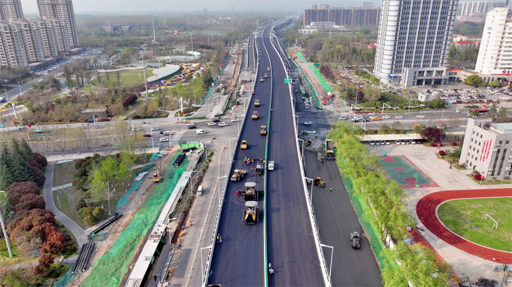 “目前,迎賓大道(浦東路—霞輝路段)快速化改造工程橋梁主體全部完成,正在進行瀝青攤鋪和綠化栽植工作,下一步,我們將緊緊錨定通車目標(biāo),吹響攻堅號角,緊盯工程建設(shè)的每個環(huán)節(jié)、每道工序、每個細(xì)節(jié)、每項指標(biāo),為持續(xù)完善城市骨架路網(wǎng)結(jié)構(gòu)、不斷提升老百姓獲得感和滿意度打好基礎(chǔ)。”高鐵公司相關(guān)負(fù)責(zé)人說。
