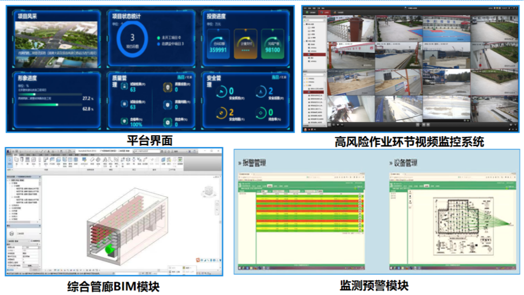 積極引入新技術、新工藝,牽頭搭建基于“BIM+物聯(lián)網技術”的智慧工地集成平臺,有效整合安全“大數據”,構建起工程建設管理云平臺,集成日常安全管理動態(tài)化、關鍵結構與部位及設備運行參數監(jiān)控預警、綜合數據處理分析、全線路面工程一體化管控分級預警等。同時,持續(xù)強化技術創(chuàng)新,高鐵商務區(qū)路網工程按照管廊節(jié)段尺寸專門設計加工新型鋼模臺車,在加倍提高自身穩(wěn)定性基礎上,實現(xiàn)了施工轉換效率的有效提升;引入專業(yè)監(jiān)測單位實時監(jiān)測深基坑圍護結構、地下水狀況、底部及周邊土體及地下管線等的變形、沉降,動態(tài)監(jiān)控箱涵鋼板樁支護、滿堂支撐架等高風險作業(yè)環(huán)節(jié),有效壓降安全風險。北京路快速化改造工程跨京杭運河大橋,應用了目前較為先進的遠程無人值守頂推控制系統(tǒng),通過融合控制技術、5G通信技術等,實現(xiàn)系統(tǒng)自動識別頂推設備工藝狀態(tài),并判斷解決設備虛腿問題,脫離人工看頂的依賴,提高頂推過程的安全性、效率及同步性。迎賓大道二期快速化改造工程為宿遷市首例采用預制裝配式技術的試點項目,主線橋梁蓋梁、立柱、箱梁采用預制拼裝施工,立交路口及跨古黃河橋采用鋼混組合梁施工,預制裝配率達到85.4%。