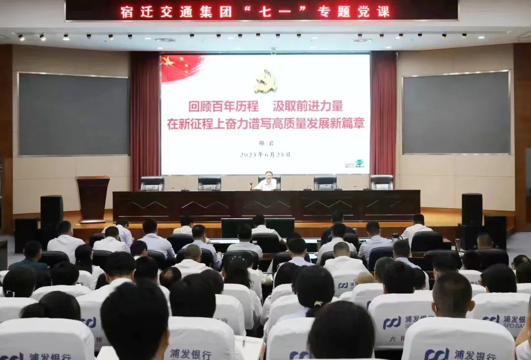 根據(jù)宿遷交通集團(tuán)黨委安排部署,6月25日下午,集團(tuán)黨委書記、副董事長邵巖結(jié)合學(xué)習(xí)習(xí)近平新時(shí)代中國特色社會(huì)主義思想和黨的二十大精神的收獲與體會(huì)、感悟與思考,以《回顧百年歷程,汲取前進(jìn)力量,在新征程上奮力譜寫高質(zhì)量發(fā)展新篇章》為題,為黨員干部職工講授“七一”專題黨課。