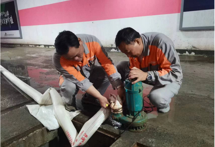 高鐵公司及時(shí)應(yīng)對防汛IV級,第一時(shí)間組織物業(yè)保安人員開展易積水區(qū)域的巡邏,夜間出動工程維修人員、出動排水設(shè)備6臺、打開集水井80余個(gè),配電房排水5間。工程維修工冒雨檢查電梯、集水井、配電室、管廊等重點(diǎn)部位。綜合客運(yùn)樞紐物業(yè)提前準(zhǔn)備了4臺抽水設(shè)施,工程維修人員協(xié)同夜間執(zhí)勤保安堅(jiān)守崗位,持續(xù)排水8個(gè)小時(shí),為樞紐安全運(yùn)轉(zhuǎn)保駕護(hù)航。