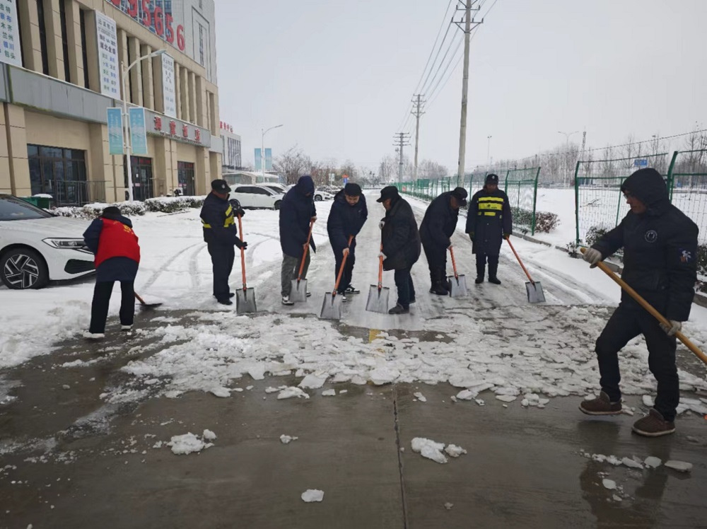 東樞紐公司組織全體干部職工高效有序開(kāi)展掃雪除冰工作。對(duì)電子商務(wù)園區(qū)東樞紐公司辦公大樓周邊及主要通行路段進(jìn)行清掃;對(duì)東樞紐建設(shè)者之家,緊急聯(lián)動(dòng)各租賃單位進(jìn)行掃雪除冰工作,有效保障相關(guān)單位正常工作運(yùn)轉(zhuǎn)。