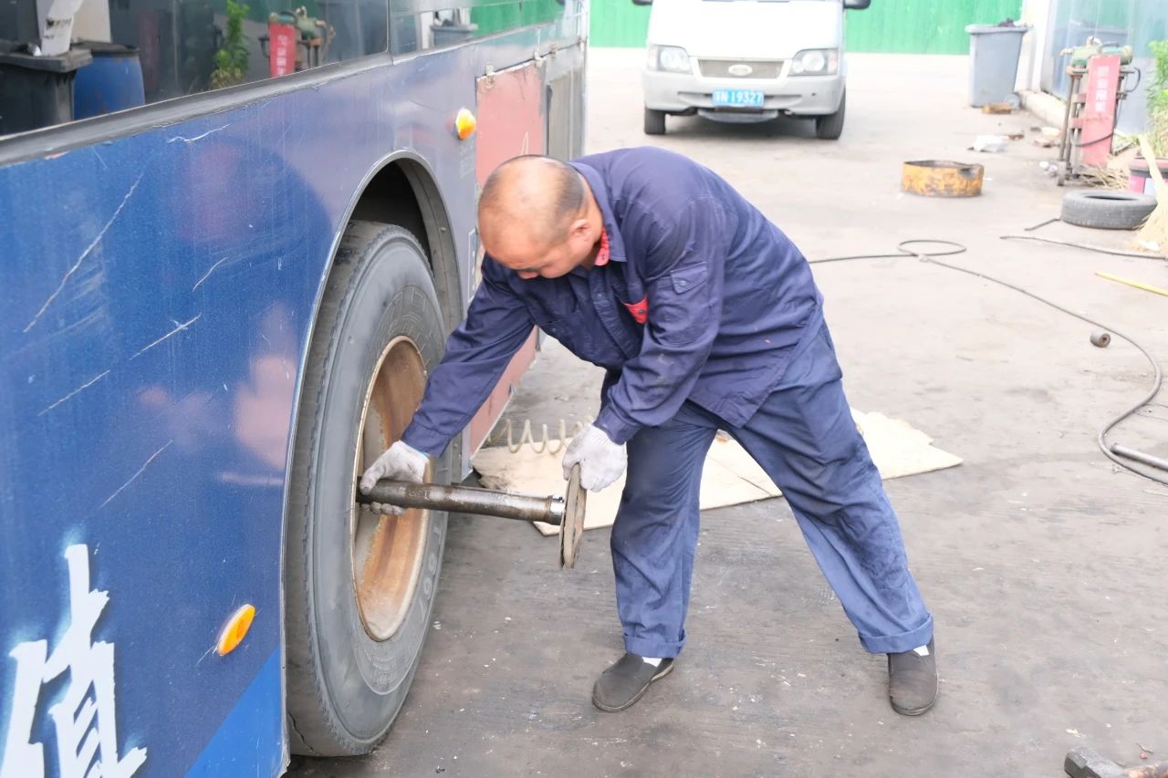 上午10點,陽光已經(jīng)變得格外“毒辣”,走進維修車間,一股混合著機油、橡膠和熱浪的灼熱氣息撲面而來。維修車間內(nèi),溫度高達40℃以上。剛駛?cè)胲囬g的公交車引擎蓋下,溫度更是接近60℃,站在旁邊都能感受到熱浪滾滾。維修工趙賀賀師傅正鉆在公交車底部,對車輛的底盤進行檢查,深藍色的工裝早已被汗水濕透,緊貼在背上。“發(fā)動機剛停機,溫度有70℃以上,手不能觸碰。”趙師傅抹了把臉笑道,“但再熱也得修,不能讓一輛‘病車’上路。”