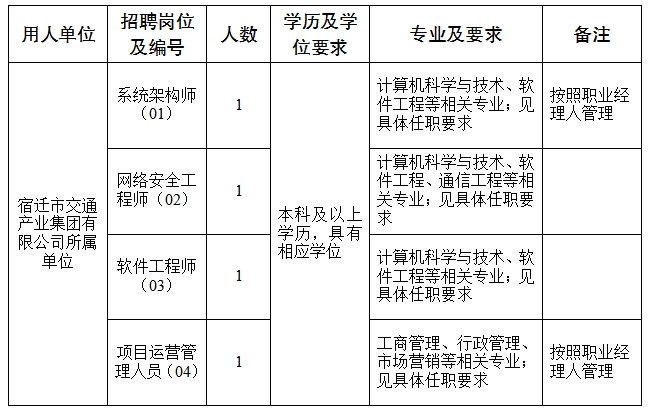 宿遷市交通產(chǎn)業(yè)集團(tuán)有限公司2024年 招聘公告