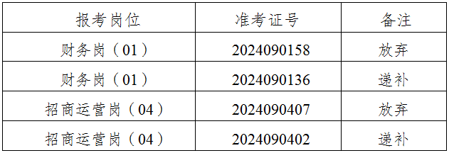 根據(jù)《宿遷市交通產(chǎn)業(yè)集團有限公司2024年秋季招聘簡章》有關規(guī)定,因考生自愿放棄資格復審,現(xiàn)將遞補資格復審人員名單予以公告。